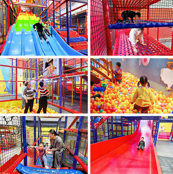 在“垂直滑梯·勇气挑战”中,家长和老师体验垂直滑梯,锻炼胆量、肢体控制能力与核心力量,感受速度与快乐,完成了自我挑战;在“大滑梯·畅快畅玩”中,宽敞平缓的大滑梯适合不同康复阶段的孩子,既能提升孩子肢体协调性与下肢力量,也让孩子肆意欢笑,家长沉浸式陪伴,忘却日常辛劳;在“钻爬绳网·体能训练”中,趣味钻爬、穿越绳网,针对性训练孩子的上肢力量、身体柔韧性和空间感知能力,孩子在攀爬探索中轻松完成康复目标。
