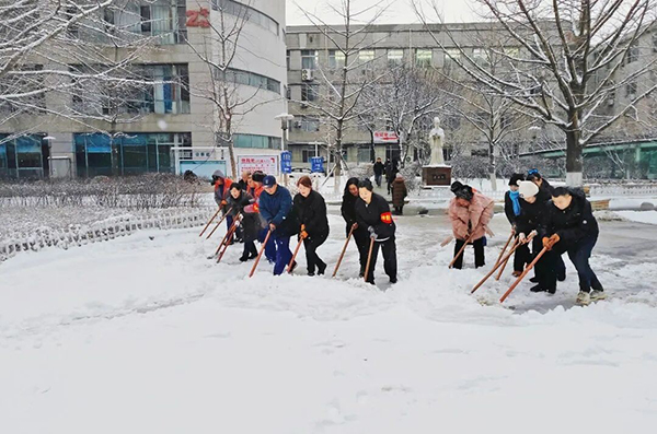 防滑除险,守护出行“安全通道”。医院建立雨雪天气应急清扫机制,组建专项工作小组,配备除雪铲、融雪剂、清扫车等工具,做到“雪停即扫、雪落即清”,重点清理医院道路、台阶、坡路等关键区域的积雪积冰;在门诊、住院楼出入口、走廊通道等人员密集区域铺设防滑垫,合理撒布融雪剂,并醒目设置“小心地滑”警示标识,全方位防范滑倒摔伤事件发生。