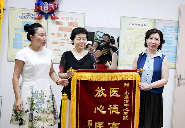 印有“医德高尚 放心医院”“白衣天使无限爱心 迎接新生命最光荣”的鲜红锦旗,被一位曾在这里生产的军属孕妈妈送给了本溪市中心医院和产科病房的全体医护人员……