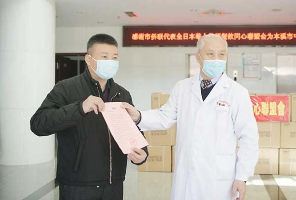 2020年3月23日上午,在本溪市中心医院2号楼大厅爱心凝聚,市侨联秘书长黄士平一行3人来院,代表旅居日本的60余位华人华侨为我院捐赠医疗物资,这也是我院接收以海外团体的方式捐赠的第一批境外物资。